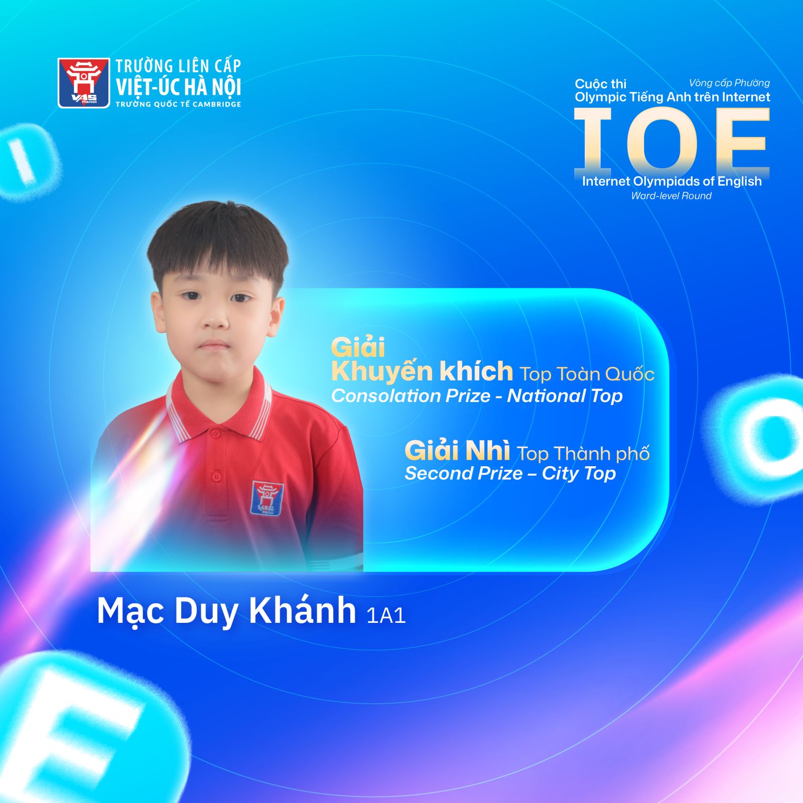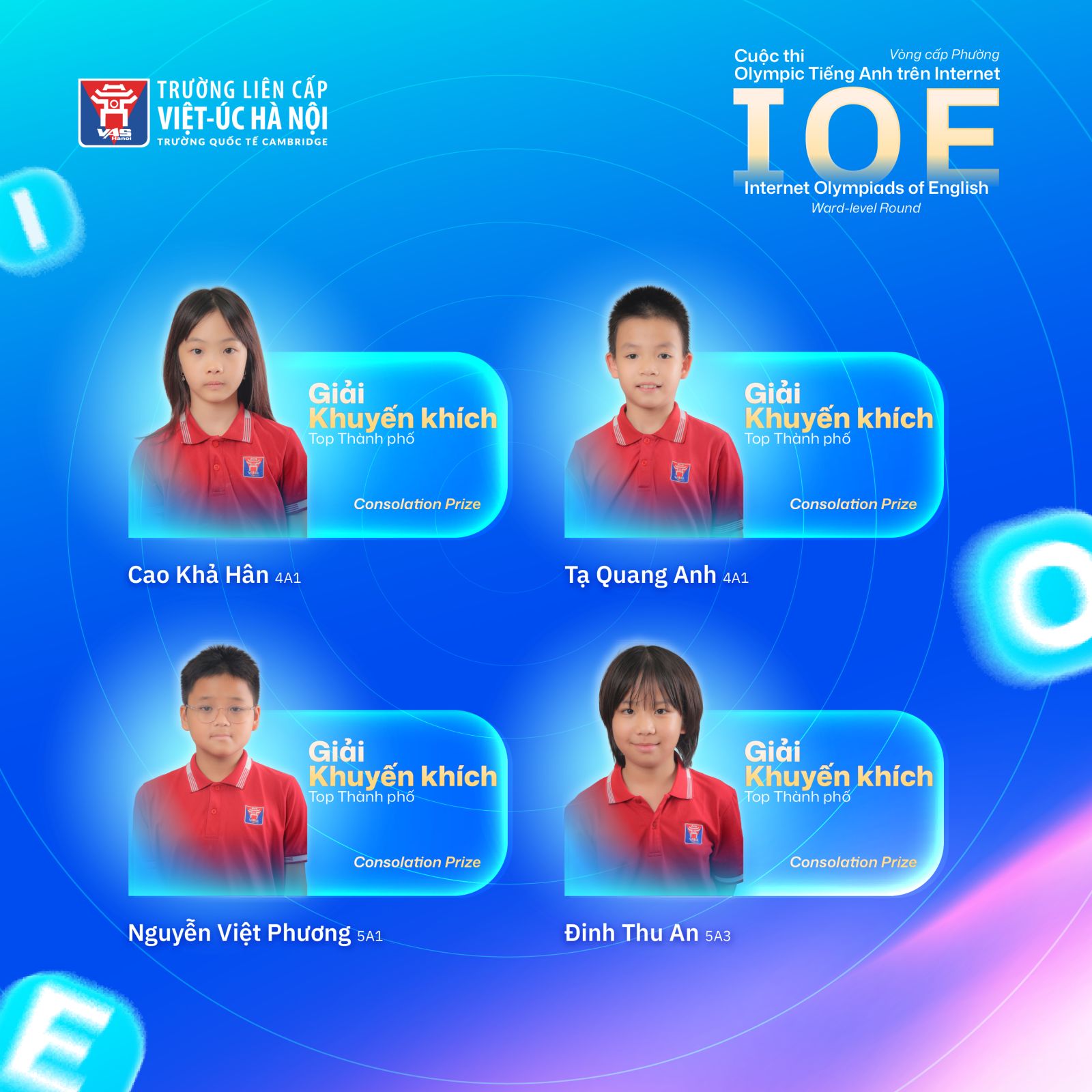 VAS Hanoi tin rằng, với niềm đam mê, tinh thần cầu tiến và nền tảng tiếng Anh vững chắc, các em sẽ tiếp tục tỏa sáng trên nhiều đấu trường tri thức phía trước.