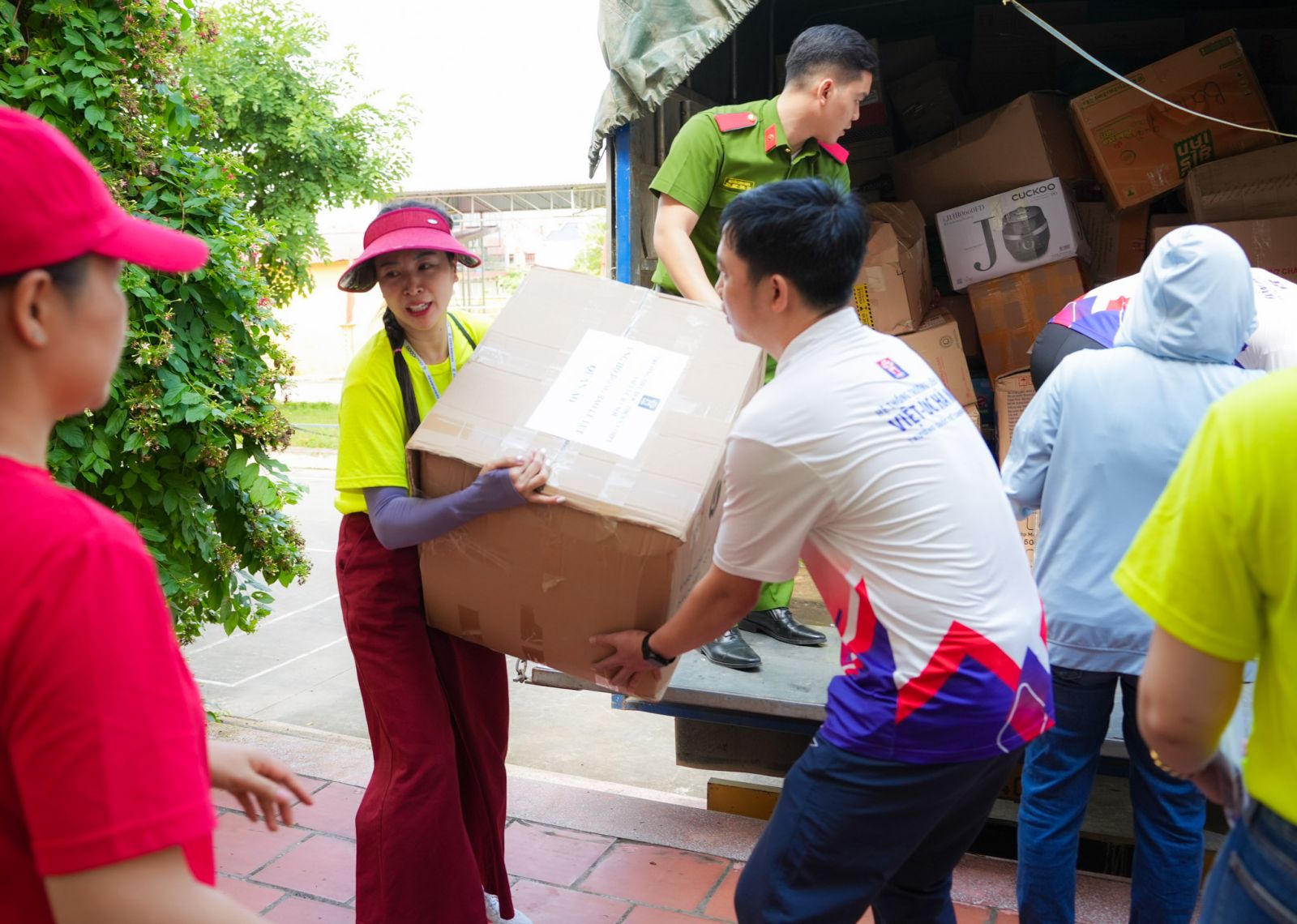 Chỉ sau một ngày, gần 10 tấn hàng hóa thiết yếu đã được tập hợp, phân loại và đóng gói cẩn thận trong hơn 2.000 thùng hàng. Những chai nước lọc, hộp sữa, gói mì, bộ quần áo, tập vở, đồ dùng học tập… – tất cả được xếp ngay ngắn, chứa đựng không chỉ sự quan tâm, mà còn là niềm thương cảm và tinh thần tương thân tương ái được gửi gắm trong từng món quà.