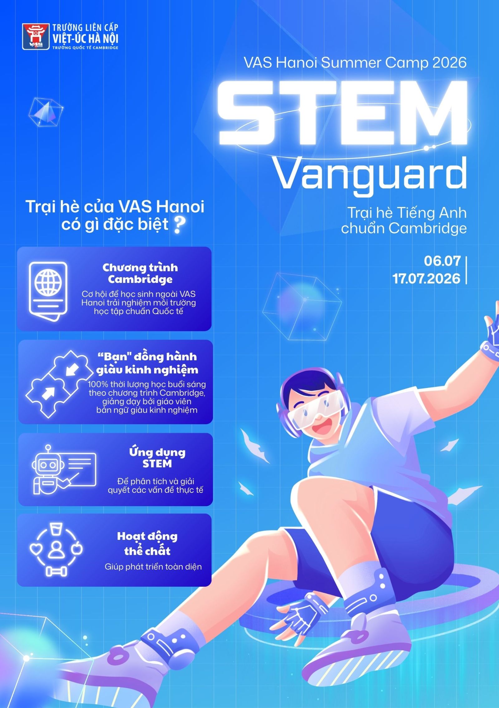 VAS Hanoi Summer Camp 2026 – STEM Vanguard không chỉ là nơi học sinh học tốt hơn, mà còn là nơi các em bắt đầu tư duy như những công dân toàn cầu, sẵn sàng bước vào tương lai với sự tự tin và bản lĩnh.