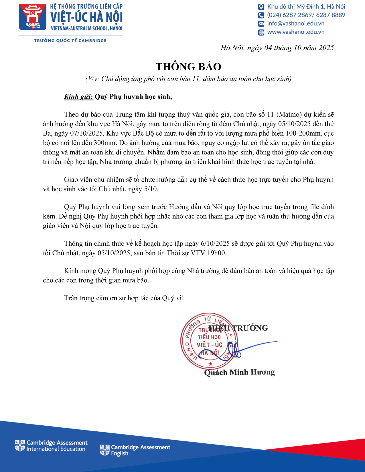 Thông báo khẩn về việc cho học sinh nghỉ học