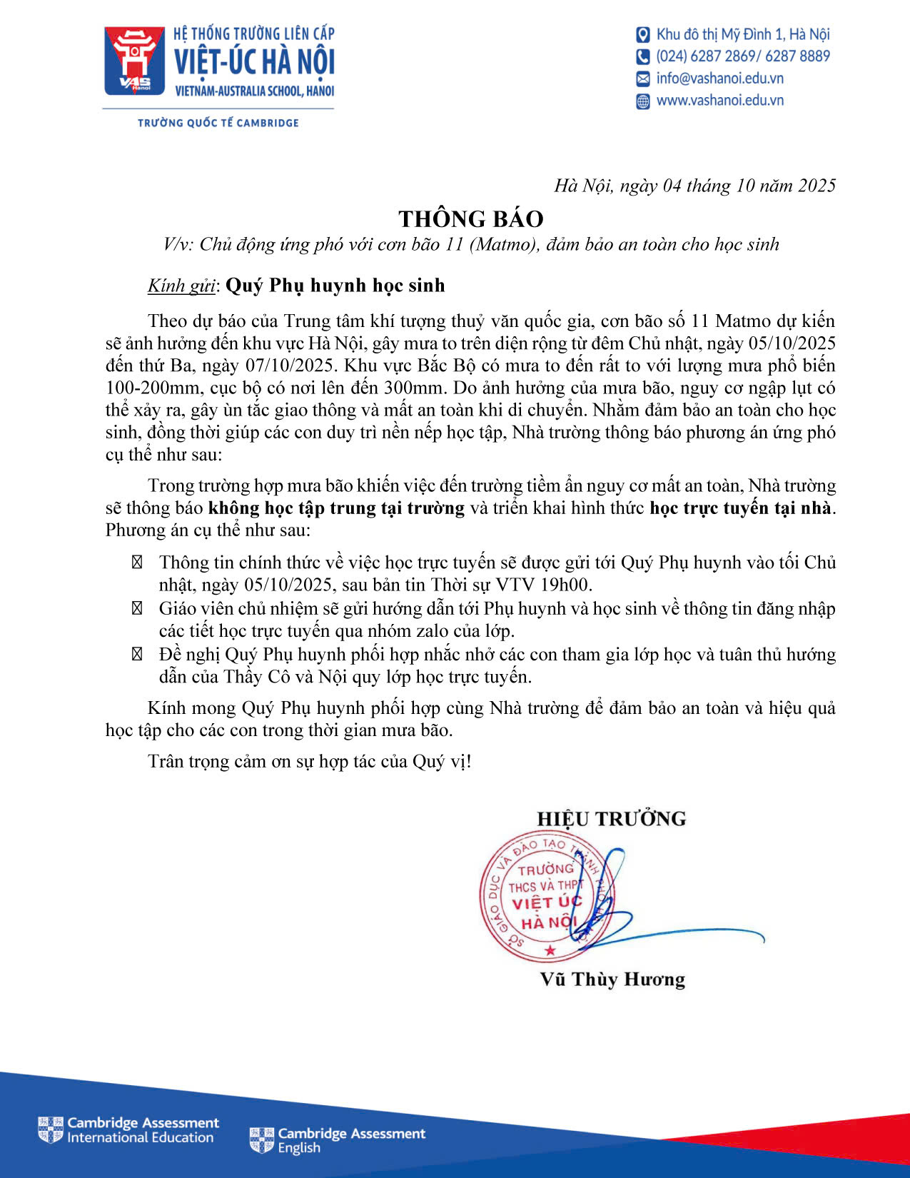 Thông báo khẩn về việc cho học sinh nghỉ học