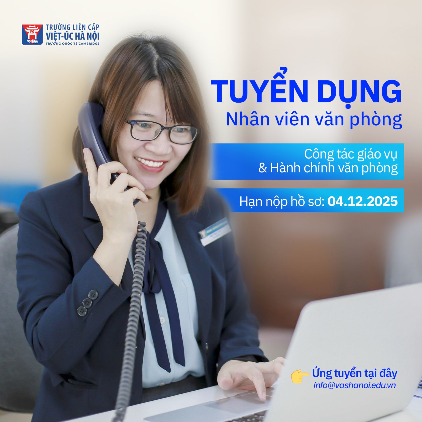 Hệ thống Trường Liên cấp Việt-Úc Hà Nội cần tuyển dụng Nhân viên Văn phòng chi tiết như sau: