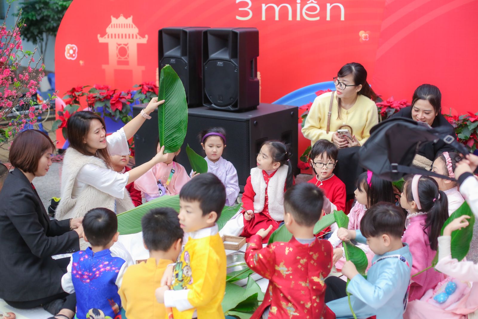 Bước vào Hội Xuân thầy cô, phụ huynh và học sinh như được “du xuân” qua ba miền đất nước. Từ sắc đào hồng thắm của miền Bắc, mai vàng rực rỡ phương Nam đến những nét dung dị, đằm thắm của miền Trung, tất cả hoà quyện tạo nên một bức tranh xuân trọn vẹn và đầy cảm xúc.