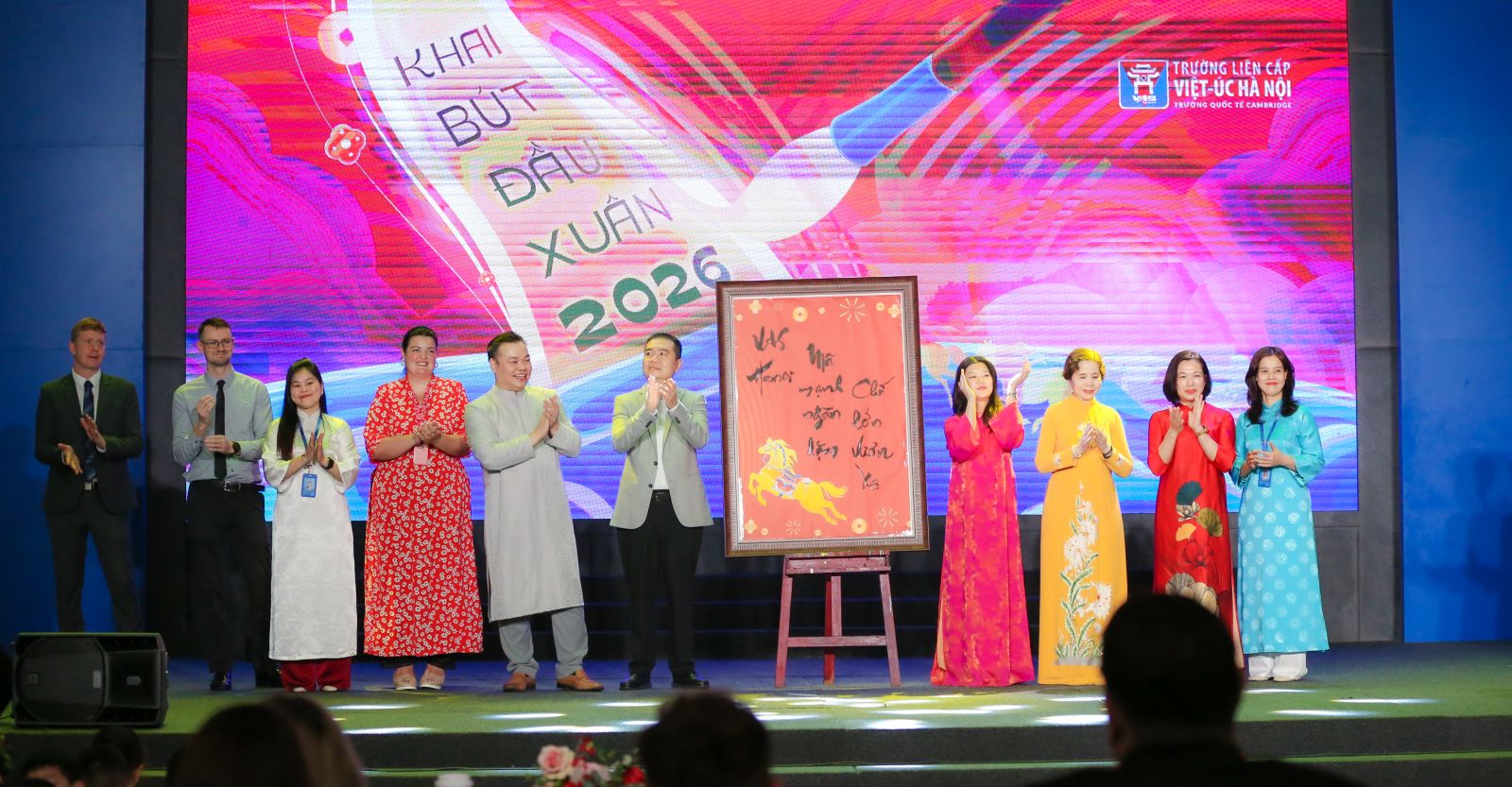 Trong không khí rộn ràng của chương trình Chào xuân - Khai bút, thầy và trò Hệ thống trường Liên cấp Việt-Úc Hà Nội đã chính thức khởi động năm 2026 bằng nguồn năng lượng tươi mới, tinh thần sẵn sàng bứt phá. Những nụ cười, những cái bắt tay đầu năm và ánh mắt háo hức đã làm nên một buổi sáng ngập tràn cảm xúc.